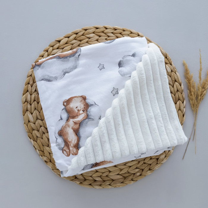 Плед плюш, без утеплення Ведмедик Коричневий на хмаринці/ Молочний плюш 100/80