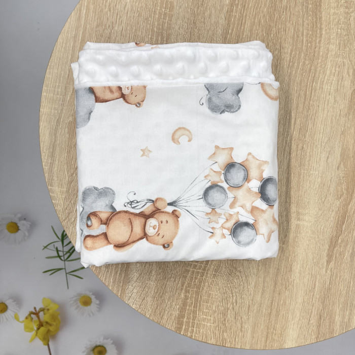 Плед плюш, без утеплення Ведмедик з кульками /Білий плюш пупиришка 100/80