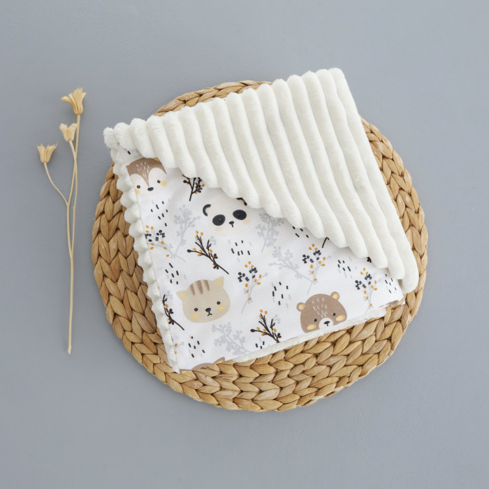 Плед плюш, без утеплення Ведмедики Коричневий/ Молочний плюш 100/80