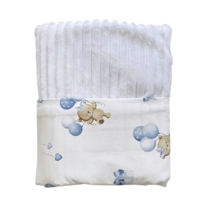 Плед плюш, без утеплення Ведмедики з кульками Блакитний /Білий плюш 100/80