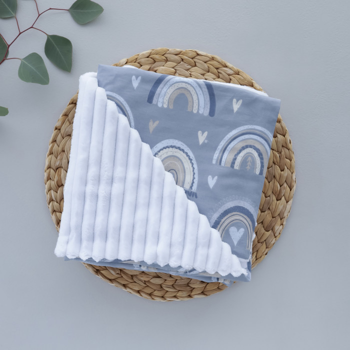 Плед плюш, без утеплення Веселка Синій/ Білий плюш 100/80