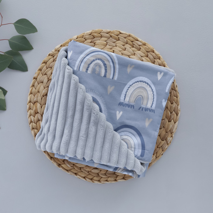 Плед плюш, без утеплення Веселка Синій/ Сірий плюш 100/80