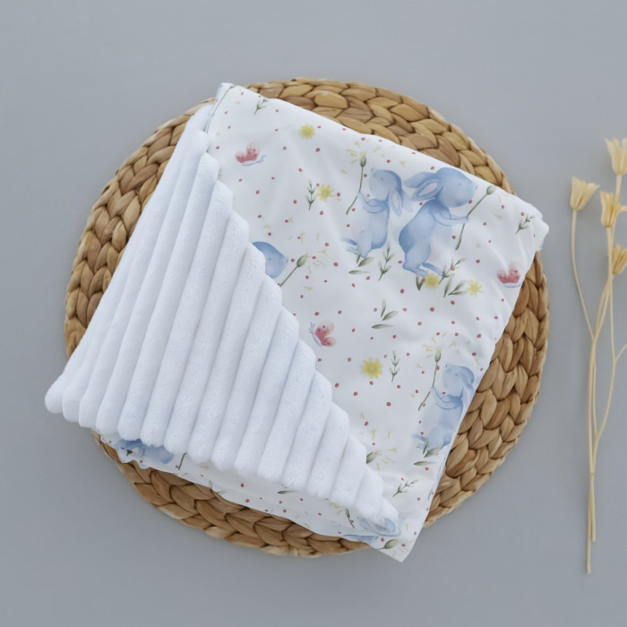 Плед плюш, без утеплення Зайчики Блакитний / Білий плюш 100/80