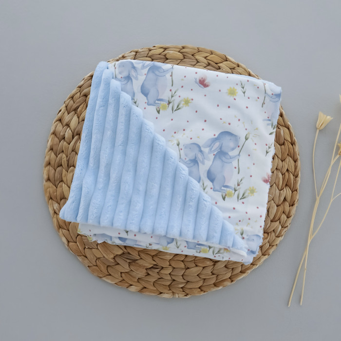 Плед плюш, без утеплення Зайчики Блакитний / Блакитний плюш 100/80