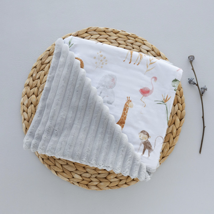 Плед плюш, без утеплення Жирафіки /Сірий плюш 100/80