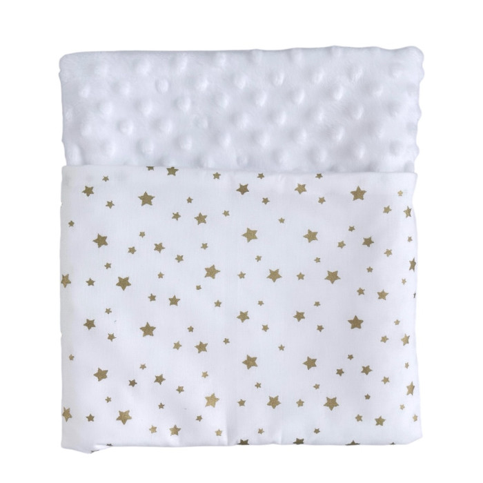 Плед плюш, без утеплення Зірки золото (гліттер)/ Білий плюш пупиришка