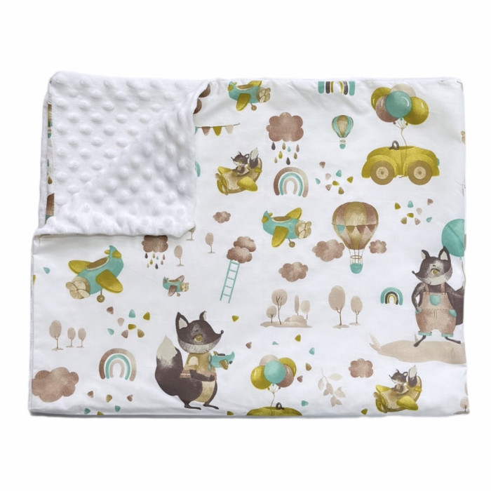 Плед плюш, без утеплення Звірята Повітряна куля/ Білий плюш пупиришка 100/80