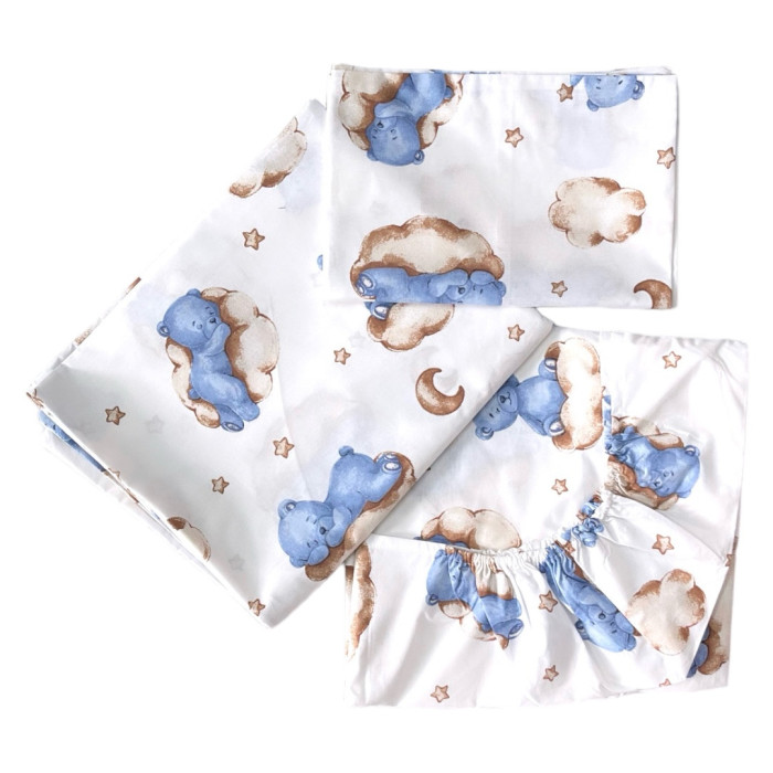 Комплект постільної білизни Ведмедик на хмаринці Блакитний (підковдра 140*110, наволочка 40*60, простинка 120*60)