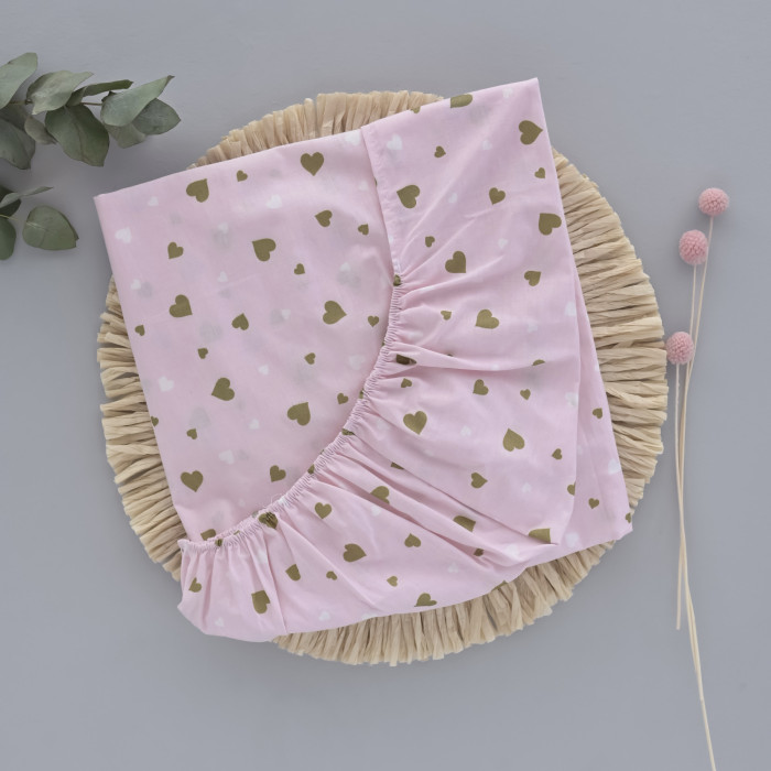 Простинка на гумці в ліжко 120*60 Сердечка Рожевий (гліттер)