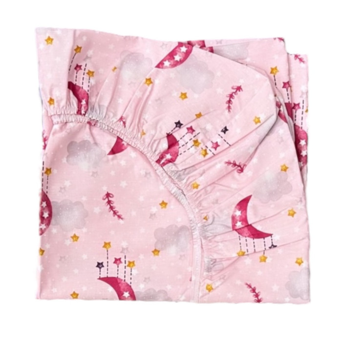 Простинка на гумці в ліжко Місяць Хмаринка Рожевий 120/60