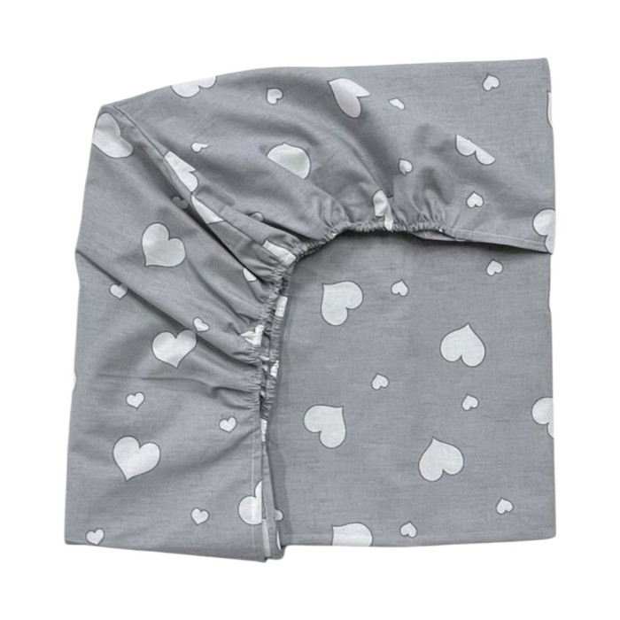 Простинка на гумці в ліжко Сердечка білі на сірому 120/60