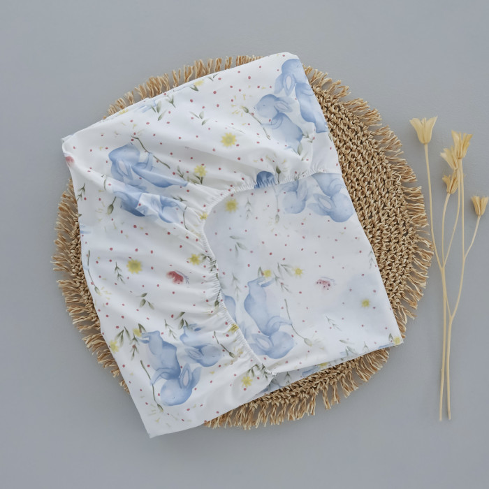 Простинка на гумці в ліжко Зайчики Блакитний 120/60
