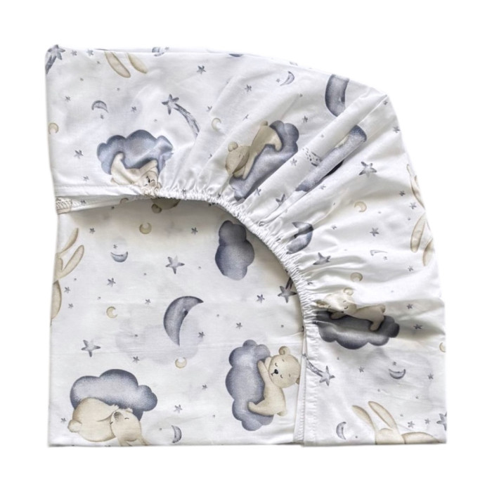 Простинка на гумці в ліжко Звірята на Сірій хмаринці 120/60