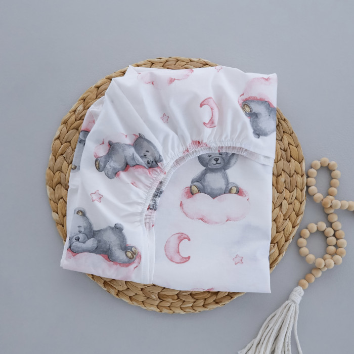 Простинка в ліжко на гумці Ведмедик на хмаринці Рожевий 120/60