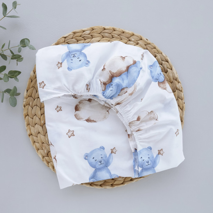 Простирадло на гумці в ліжко Ведмедик на хмаринці Блакитний 120/60
