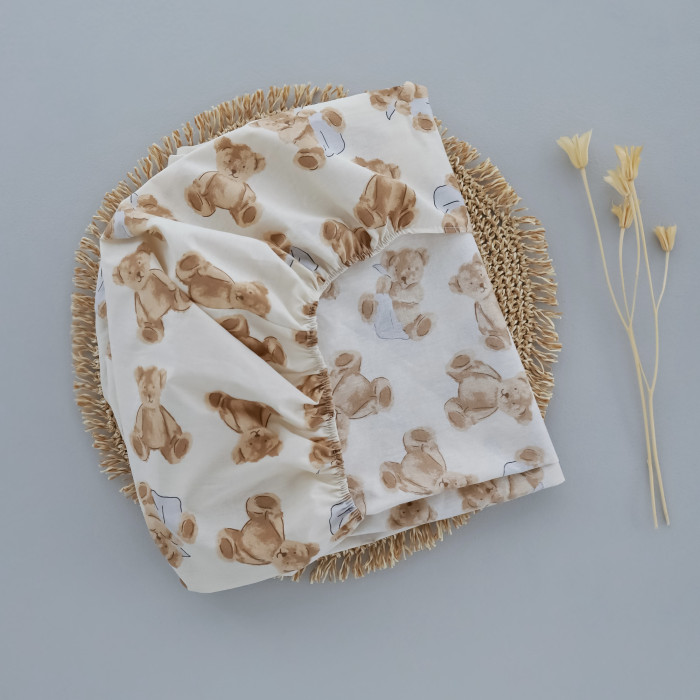 Простирадло на гумці в ліжко Ведмедик з хусточкою Бежевий 120/60