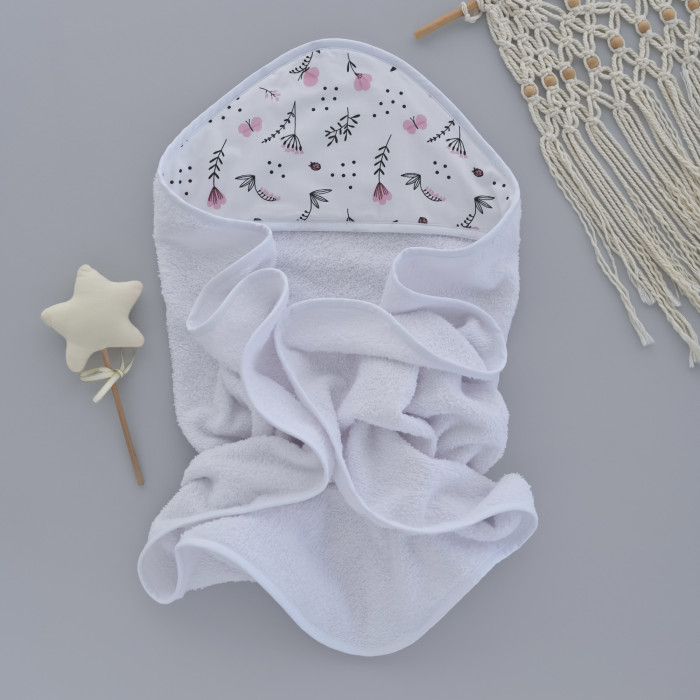 Дитячий рушник з кутиком махровий (100% котон) Квіточки Рожевий 90/80