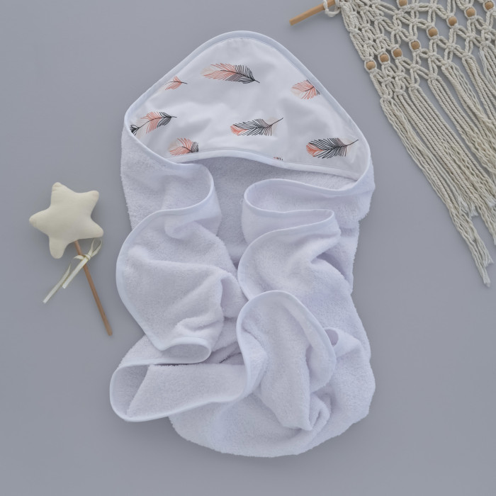 Дитячий рушник з кутиком махровий (100% котон) Пірʼїнки Кораловий 90/80