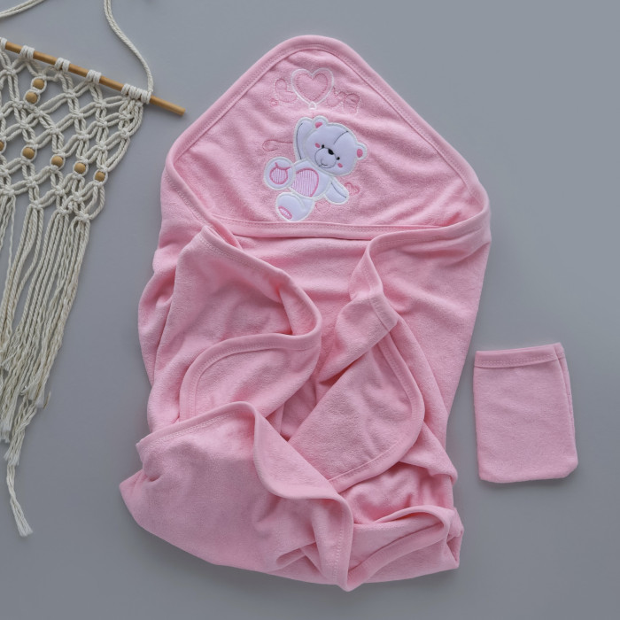 Дитячий рушник з кутиком махровий Ведмедик Love Рожевий 90/85