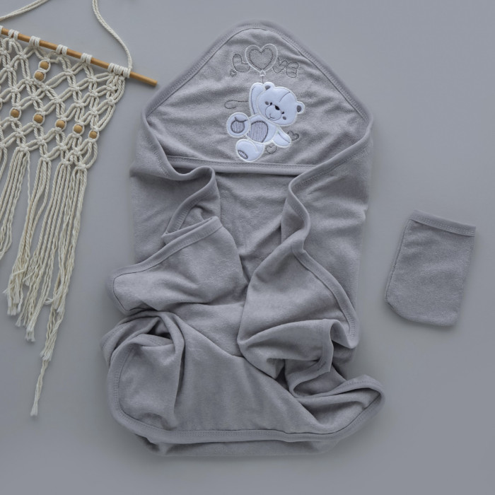 Дитячий рушник з кутиком махровий Ведмедик Love Сірий 90/85