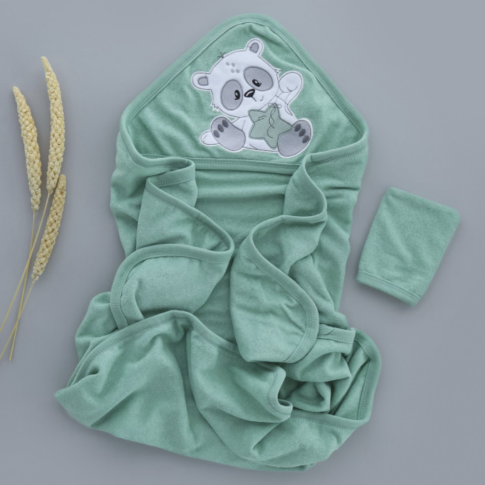 Дитячий рушник з кутиком махровий Ведмедик Зірка Оливковий 90/85
