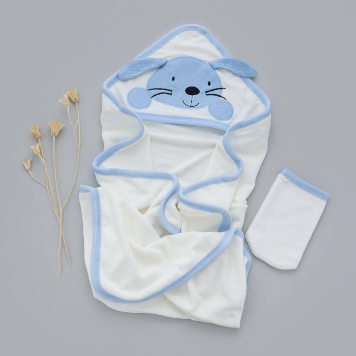 Дитячий рушник з кутиком махровий Зайка Блакитний 90/85
