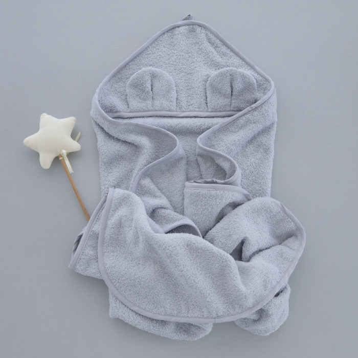 Дитячий рушник з кутиком та вушками махровий Сірий 90/80