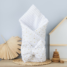 Плед зі зʼємним утепленням та бантом -резинкою Сердечка Блакитний -Сірий (гліттер) /Сірий плюш 90/80