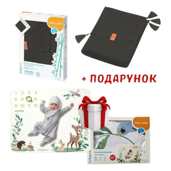 Одіялко бамбукове з бахромою (75 /100) (Чорний) + Флісовий фотоплед в подарунок/ "Babyono"