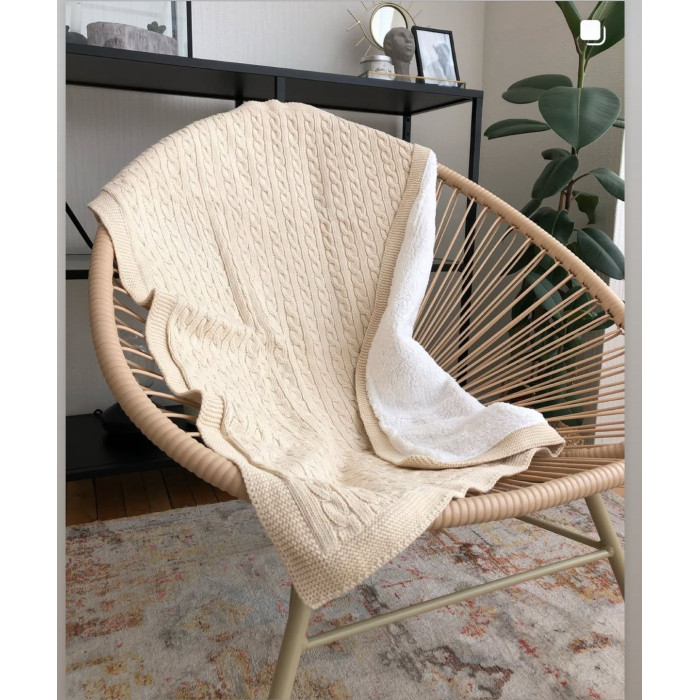 Плед в’язаний (100% cotton pampuk) з утепленням св. Бежевий косичка 90/75