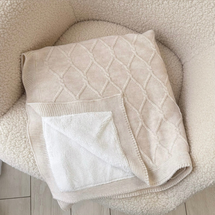 Плед вʼязаний (100% organic cotton) з утепленням Бежевий ромби 90/80