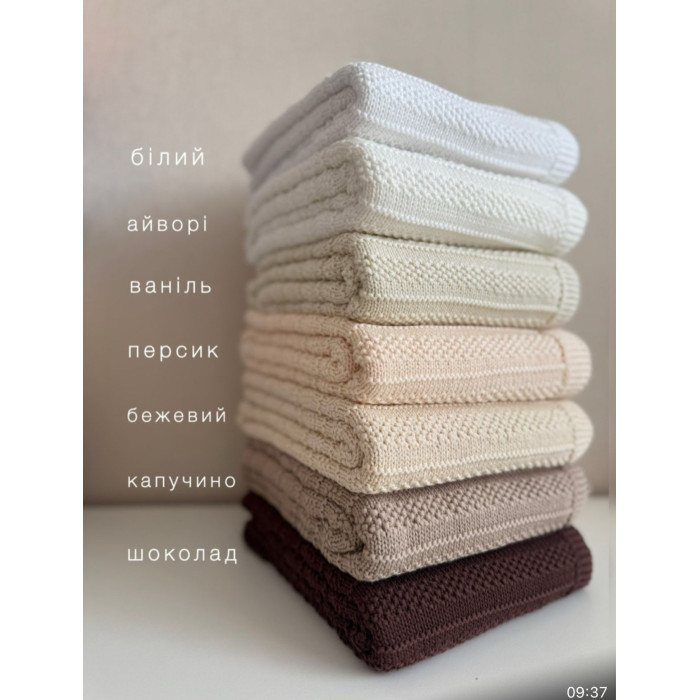 Плед вʼязаний ДЕМІ Бежевий Смужка 90/80