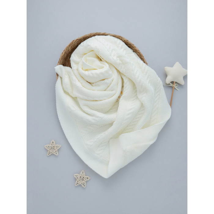 Плед вʼязаний утеплений (Natural Wool) Молочний косичка 90/80