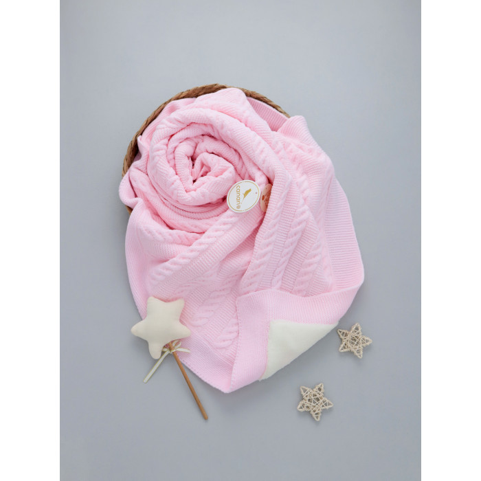 Плед вʼязаний утеплений (Natural Wool) Рожевий косичка 90/80