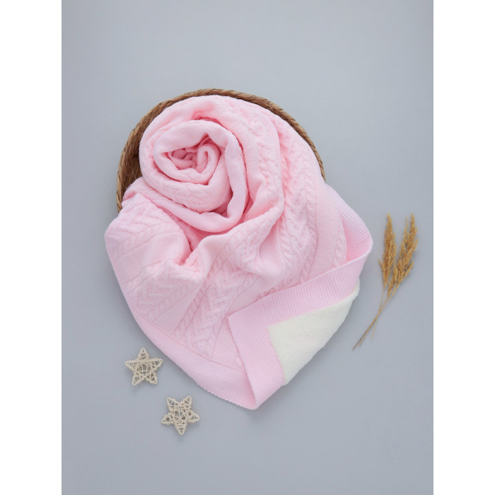 Плед вʼязаний утеплений (Natural Wool) Рожевий косичка широка 90/80