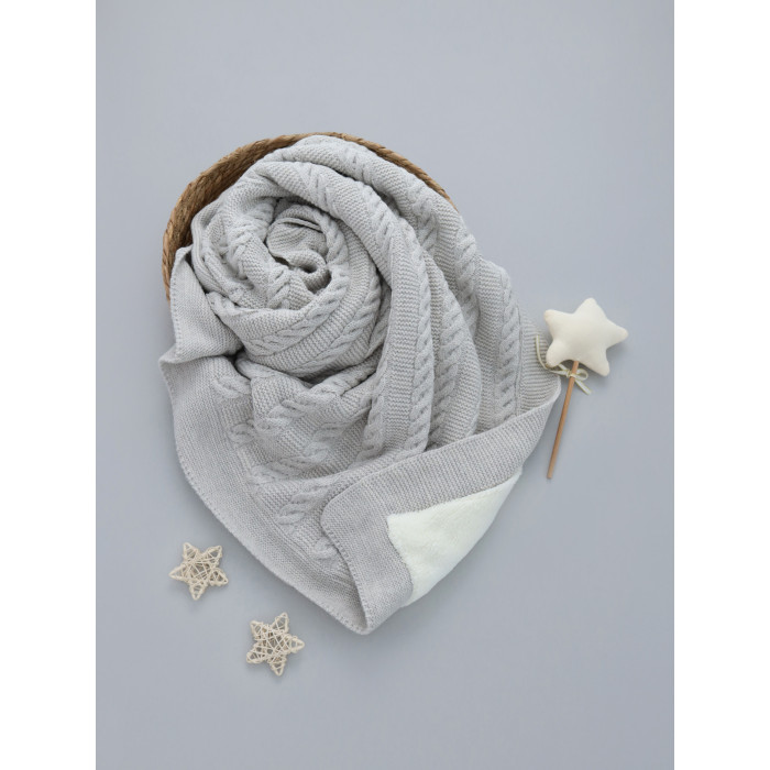 Плед вʼязаний утеплений (Natural Wool) Сірий косичка 90/80