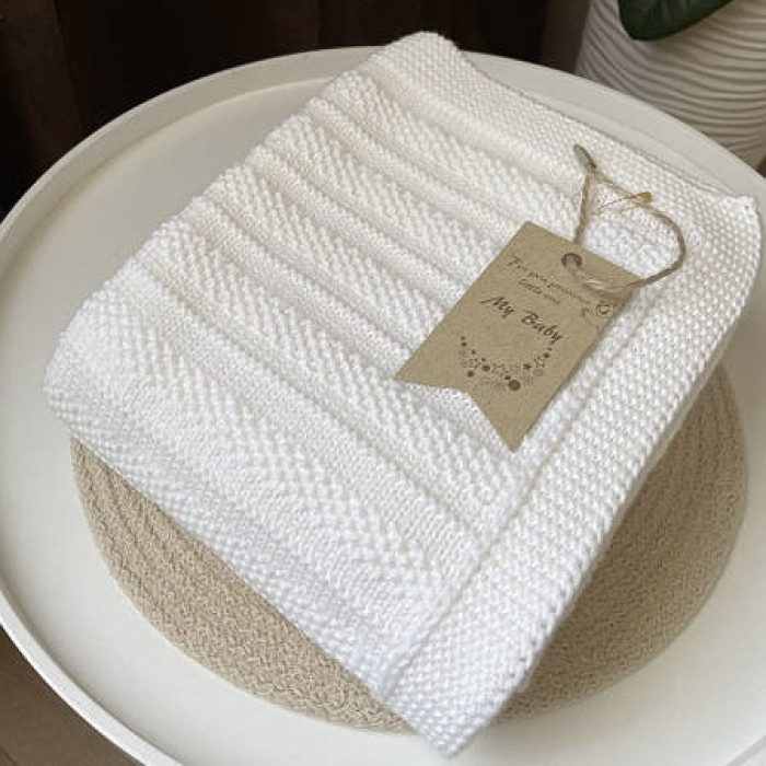 В'язаний плед ДЕМІ смужка Білий 90/80