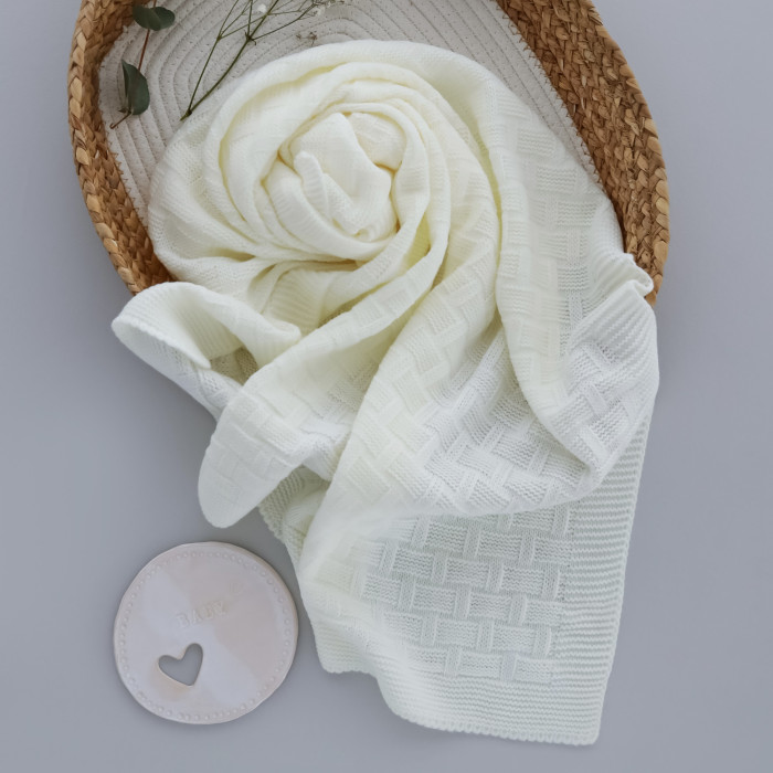 Вʼязаний плед Молочний шахматка 95/70